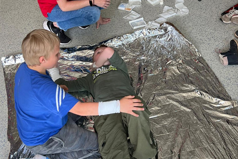 Am Freitag, den 24. Mai 2024, startete Herr Adam in Begleitung von Pia Färber vom Jugendrotkreuz Neuenkirchen einen Erste-Hilfe-Kurs in der dritten Klasse der Hinrich-Wilhelm-Kopf Schule in Neuenkirchen.
