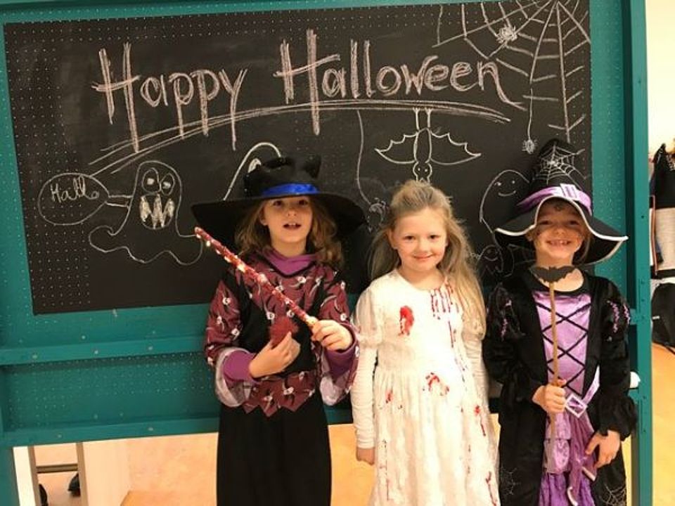 Zum Abschluss der Ferien gab es eine Halloween-Feier. Die Kinder planten bereits Tage im Voraus wie sie sich verkleiden wollten und feierten ausgelassen eine Party mit Disco im Bewegungsraum und Prämierung der besten Kostüme. Die Kinder durften den Tag mit vielen leckeren und zum Teil selbst zubereiteten Naschereien zu einem gelungenen Ende bringen.