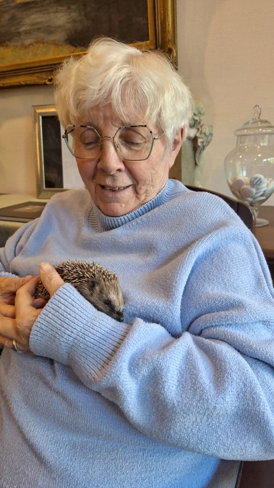 Da dies noch einige Monate in Anspruch nehmen wird, haben sich die Vereinsmitglieder der Igelhilfe kurzerhand überlegt, den Bewohnern in der Einrichtung einen Besuch abzustatten. Das Wiedersehen hat sofort für freudige Gesichter gesorgt. In einer kleinen Gruppe haben die Bewohner und Bewohnerinnen etwas über die Igelkunde erfahren und sich ausgetauscht. Wer mochte, konnten die Igelbabys streicheln und im Arm halten. Ein Erlebnis, das man nicht alle Tage erlebt.