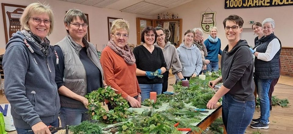 Unter der Leitung von Hella Meyer trafen sich kürzlich zahlreiche Frauen im Dörphuus und starteten die Vorweihnachtszeit mit verschiedenen Adventskränzen, Gestecken, Kerzen und Dekorationen für die Weihnachtskrippe. Auch Tischdekoration für die Adventsfeier wurden gebastelt. Dazu brachten die Teilnehmer zum Teil ihre eigenen Materialien mit und kombinierten diese mit den der anderen. „Es war total schön die verschiedenen Ideen zu sehen und sich untereinander auszutauschen – so habe ich endlich mal wieder andere Weihnachtsdeko bei mir“, sagte eine Teilnehmerin am Ende der Veranstaltung glücklich. Auch generationsübergreifend wurde sich ausgetauscht und so profitierte jeder von den Ideen der anderen. DRK-Vorsitzende Eleonore Häusler zeigte sich sehr zufrieden mit dem Nachmittag und beim anschließenden gemeinsamen Kaffeetrinken wurden schon Kreativ-Pläne für das nächste Jahr geschmiedet.