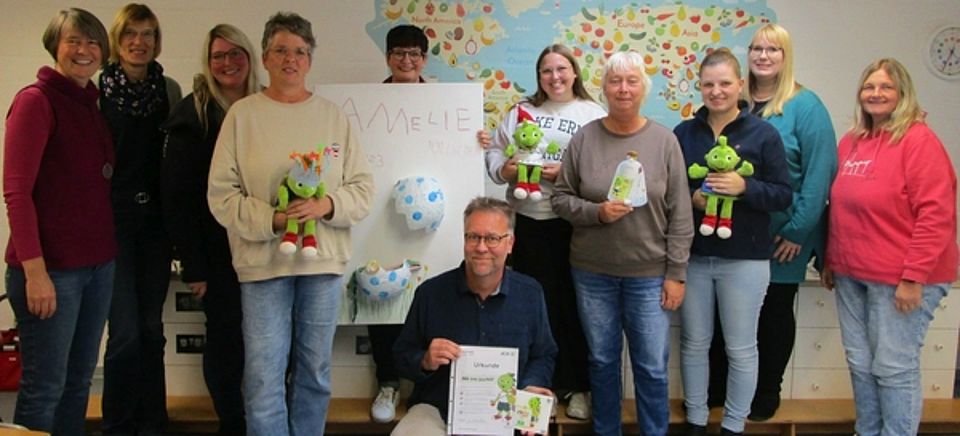 Jetzt wurde die DRK-Kita in Lamstedt für die Teilnahme am AOK-Programm „Jolinchenkids“ ausgezeichnet. AOK-Präventionsberaterin Martina Meier überreichte dem Kita-Team die Urkunde und das gläserne Jolinchen-Schild, das die Kita zukünftig als JolinchenKids-Kindergarten auszeichnet.